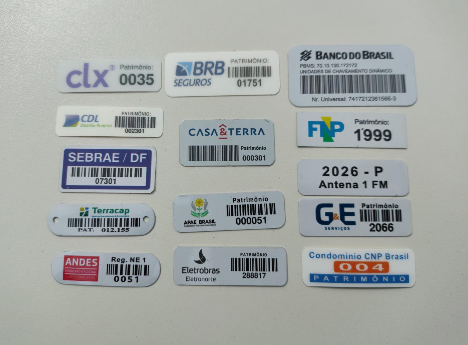 Identificação de patrimônio com placas e etiquetas com ou sem código de barras / QR Code. São Resistentes e com alta durabilidade. Temos opções de materiais rígidos ou flexíveis.